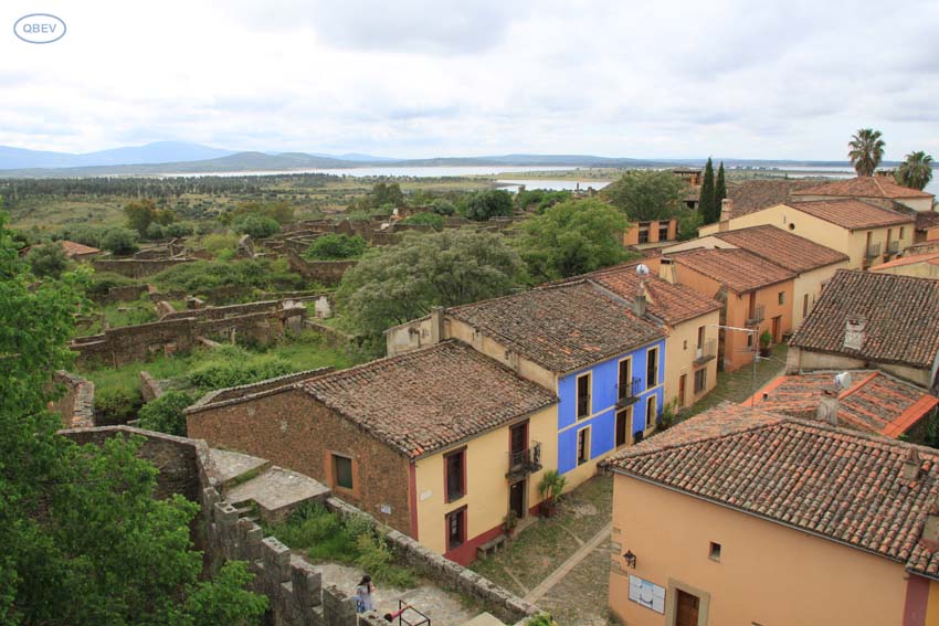 El título que hemos elegido para esta entrada del blog puede resultar bastante contradictorio, ya que nuestra intención a lo largo de las siguientes líneas es adentrarnos en un pueblo que hace años tuvo que ser desalojado. Sin embargo, basta honrarle con nuestra visita para darnos cuenta de que en estos momentos sigue más vivo que nunca. Es cierto que fuera de los horarios de visita, un gran portón lo deja aislado, pero cuando está abierto a la llegada de turistas, sus calles son un continuo discurrir de pasos de personas que observan admiradas ese llamativo contraste entre lo que fue y lo que ahora es esta pequeña localidad del Norte de Extremadura.